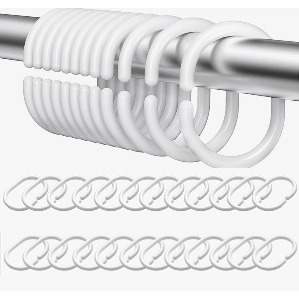 Shower Curtain Rings 2 Sets with 24 Rings - Plastic - White